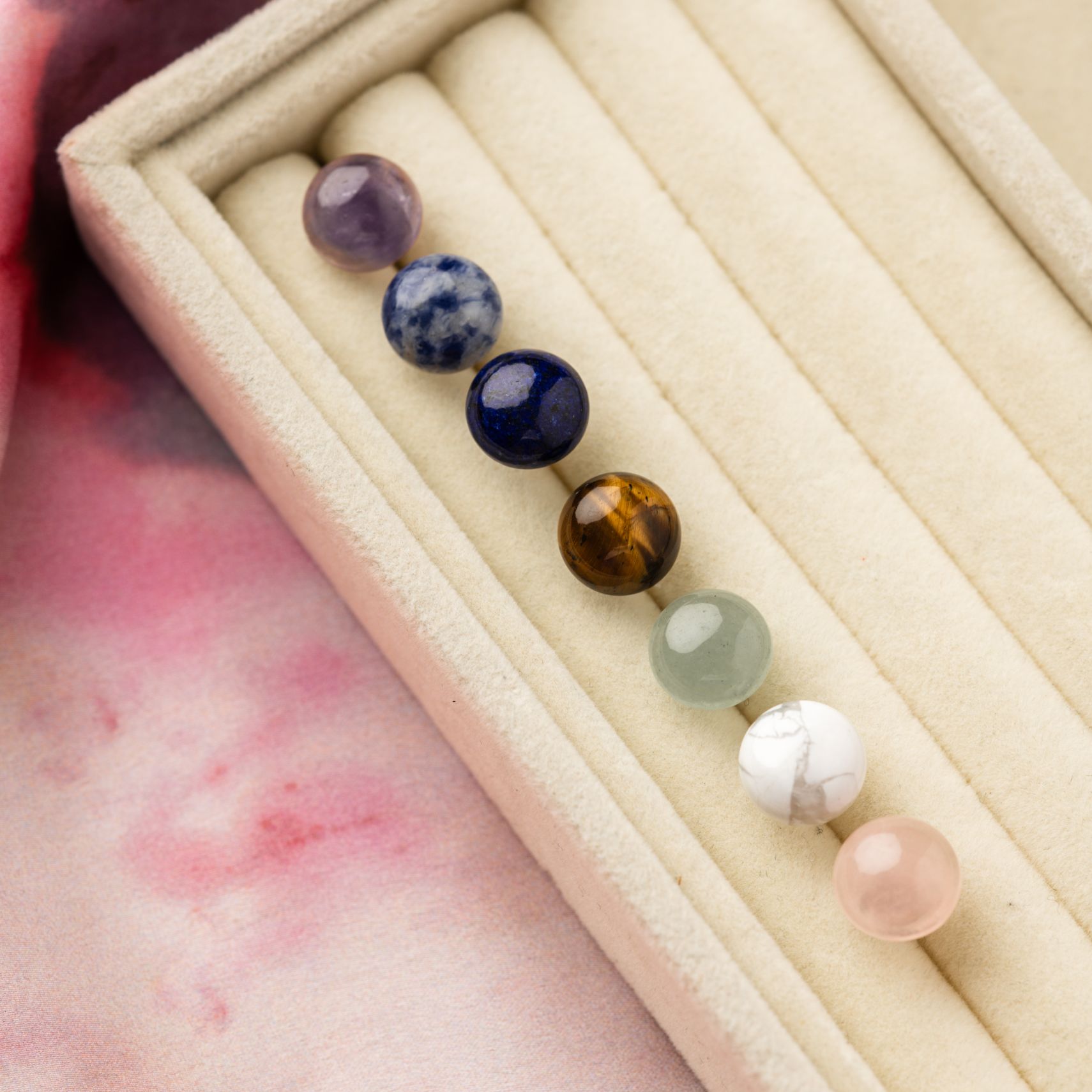 Trage ein bisschen Liebe aus Rosenquarz mit dir, fördere die Kreativität mit Lapislazuli oder entdecke die schützende Energie des Tigerauges. Mit diesem einzigartigen Set aus Edelstein-Ohrringen trägst du immer den perfekten Glücksstein, der zu deinem Outfit und deiner Tagesstimmung passt.