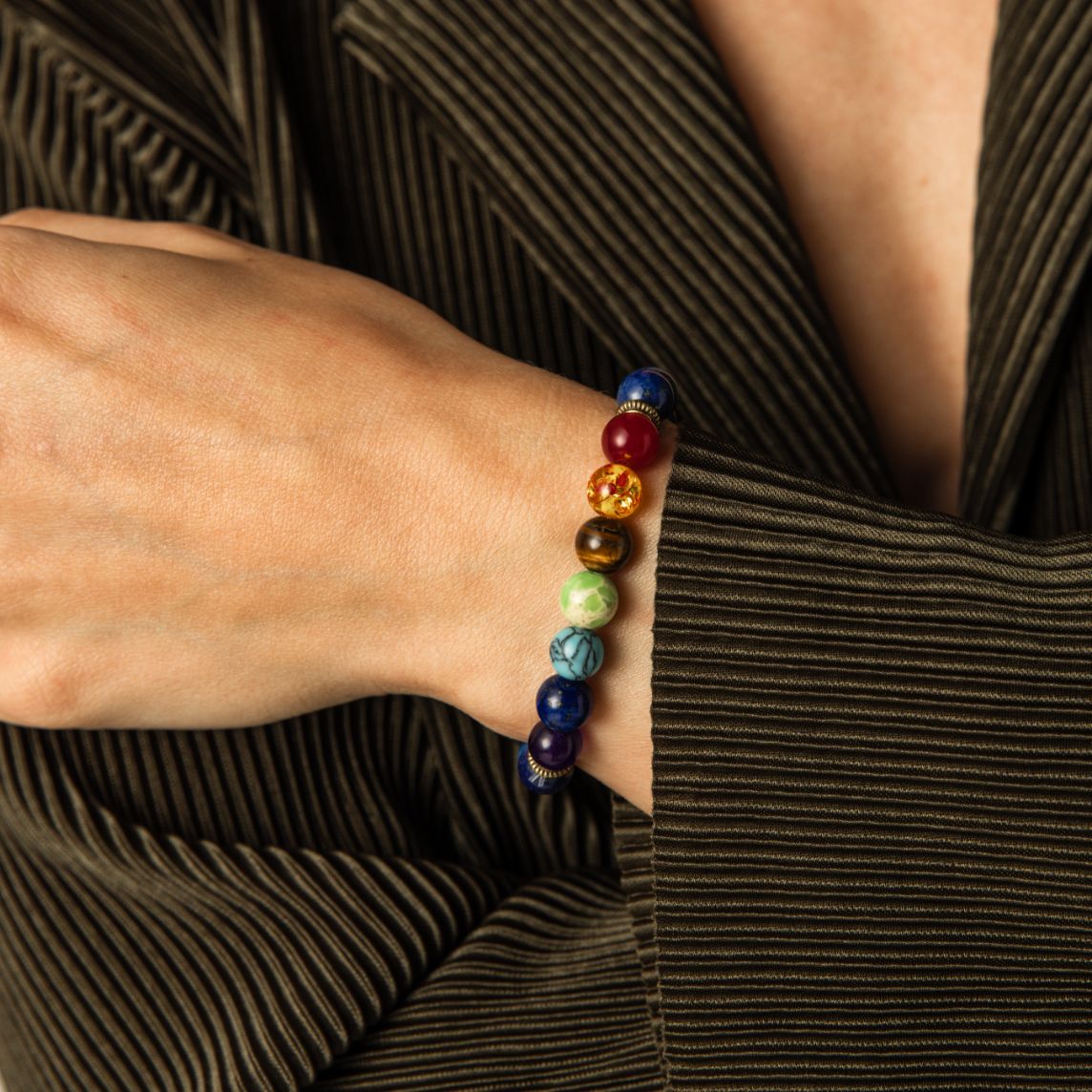 Komm ins Gleichgewicht und befreie dich von Blockaden mit diesem fröhlichen Chakra-Armband! Dieses Badu-Chakra-Armband enthält 7 bunte Steine und Perlen, die die sieben Chakren symbolisieren.