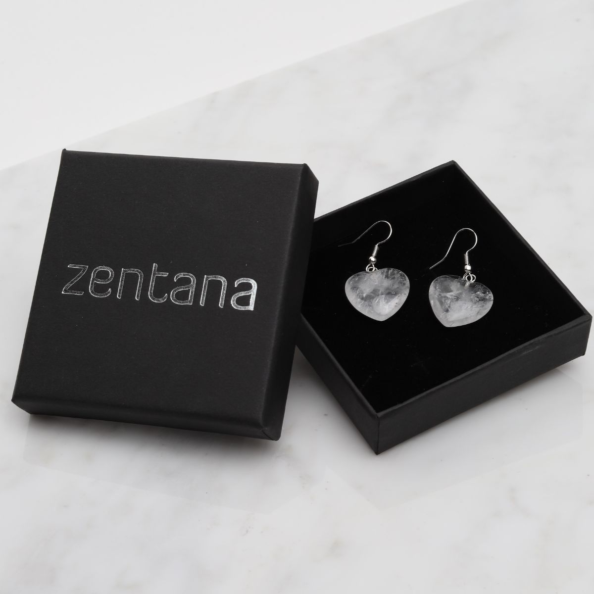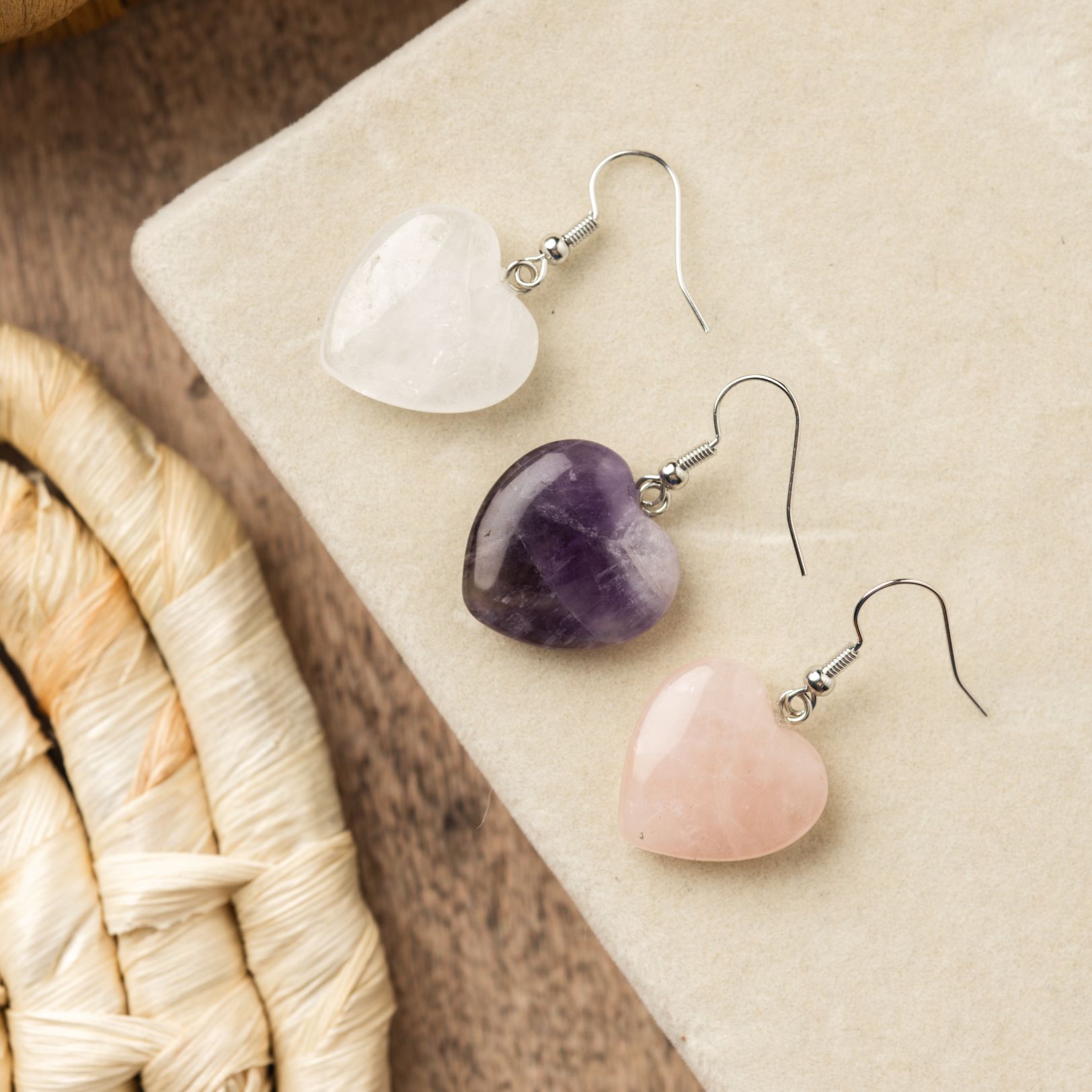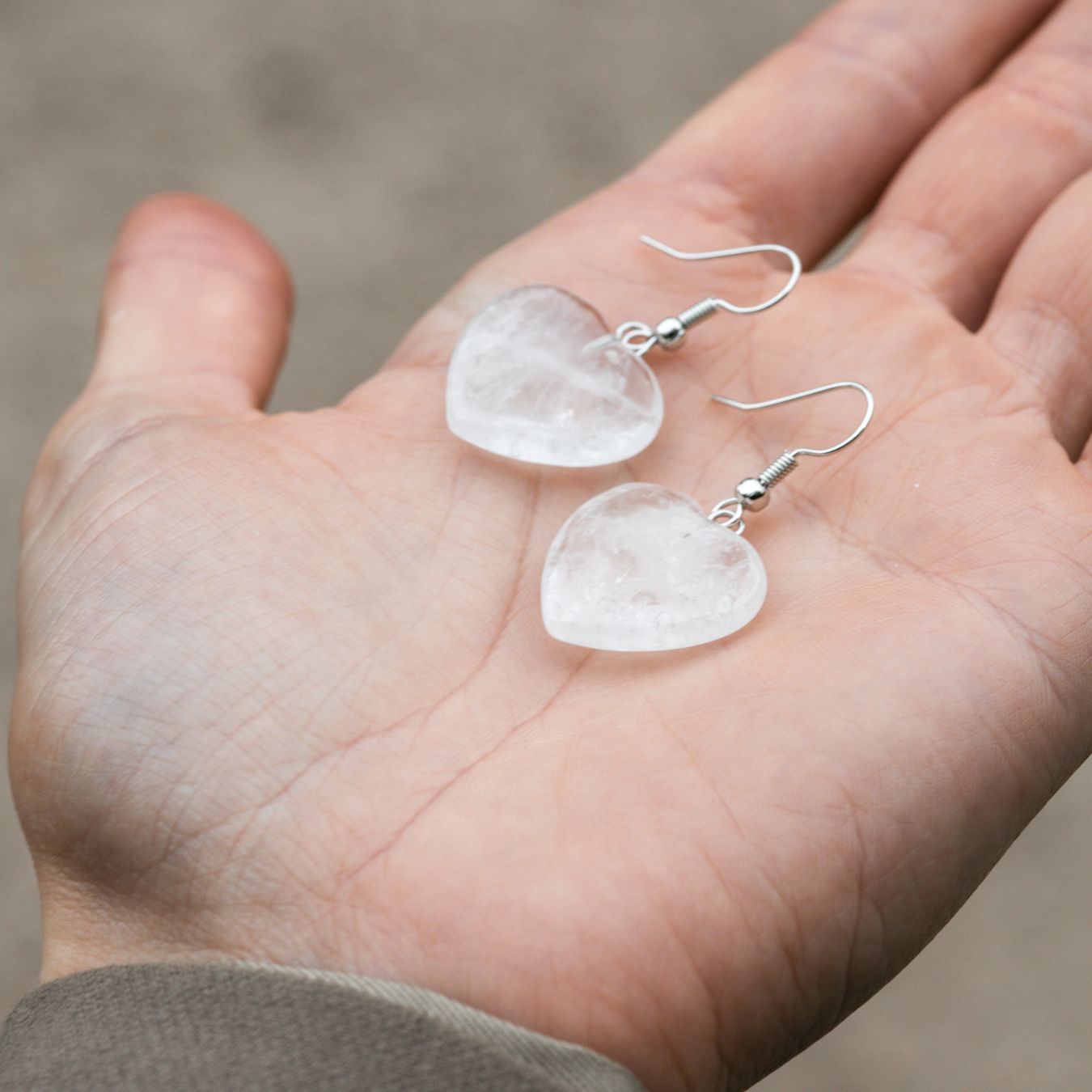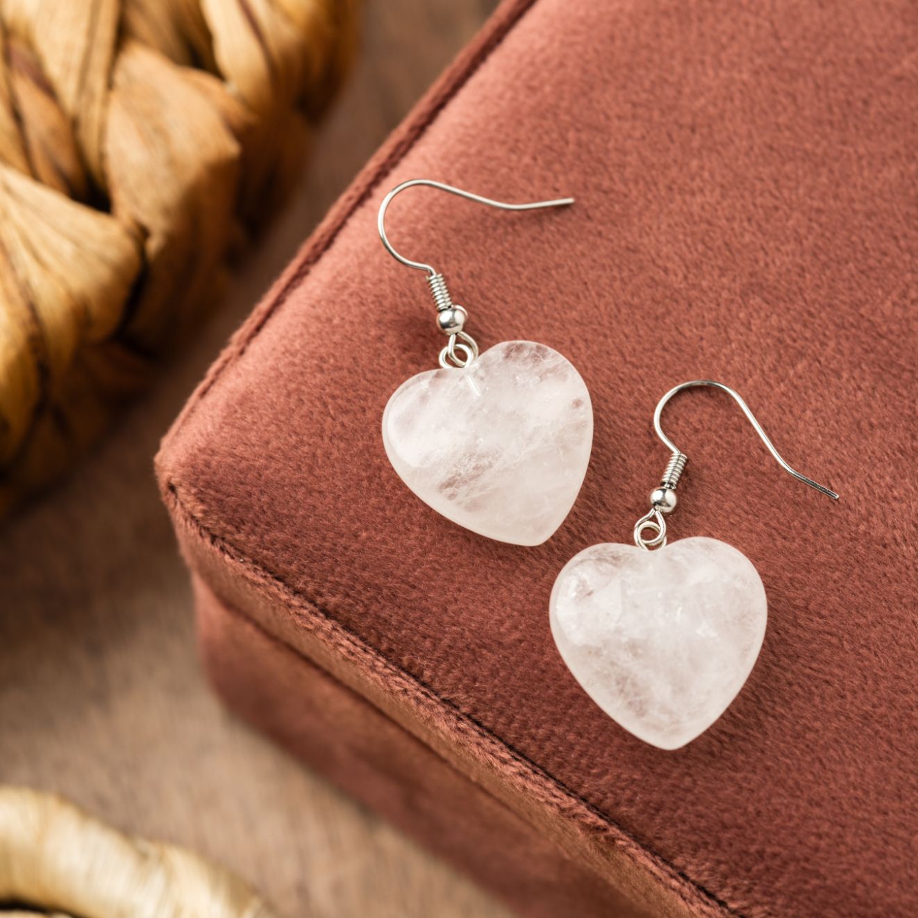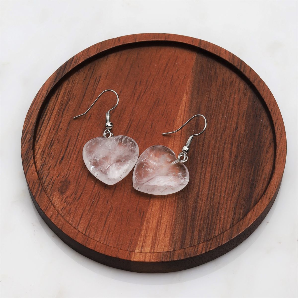 Bergkristall-Herz-Ohrring – Edelstein-Herz – Edelstahl-Ohrringe