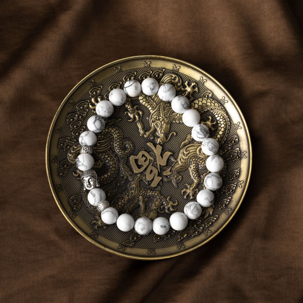 Buddha-Armband – Weißer Howlith – Zufriedenheit