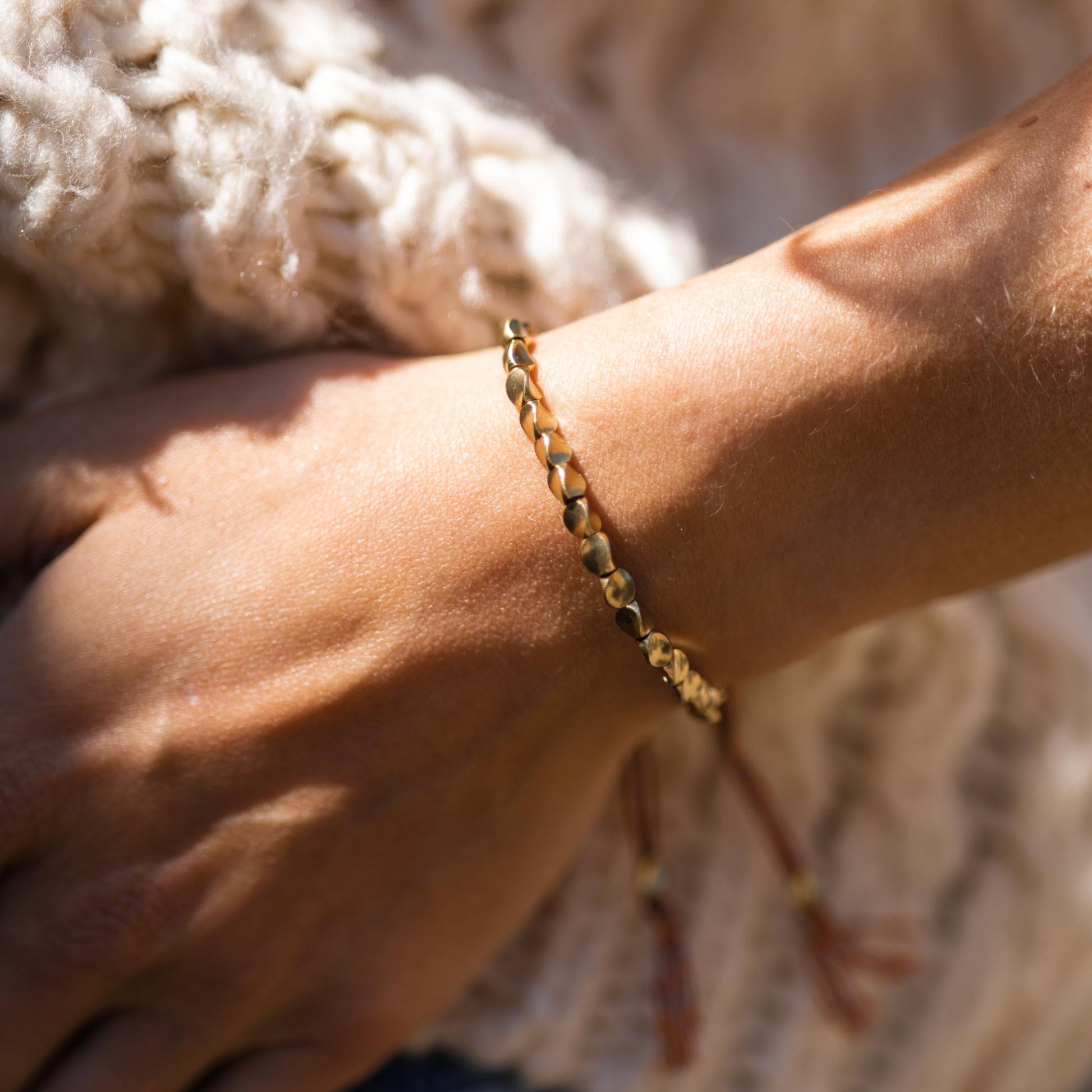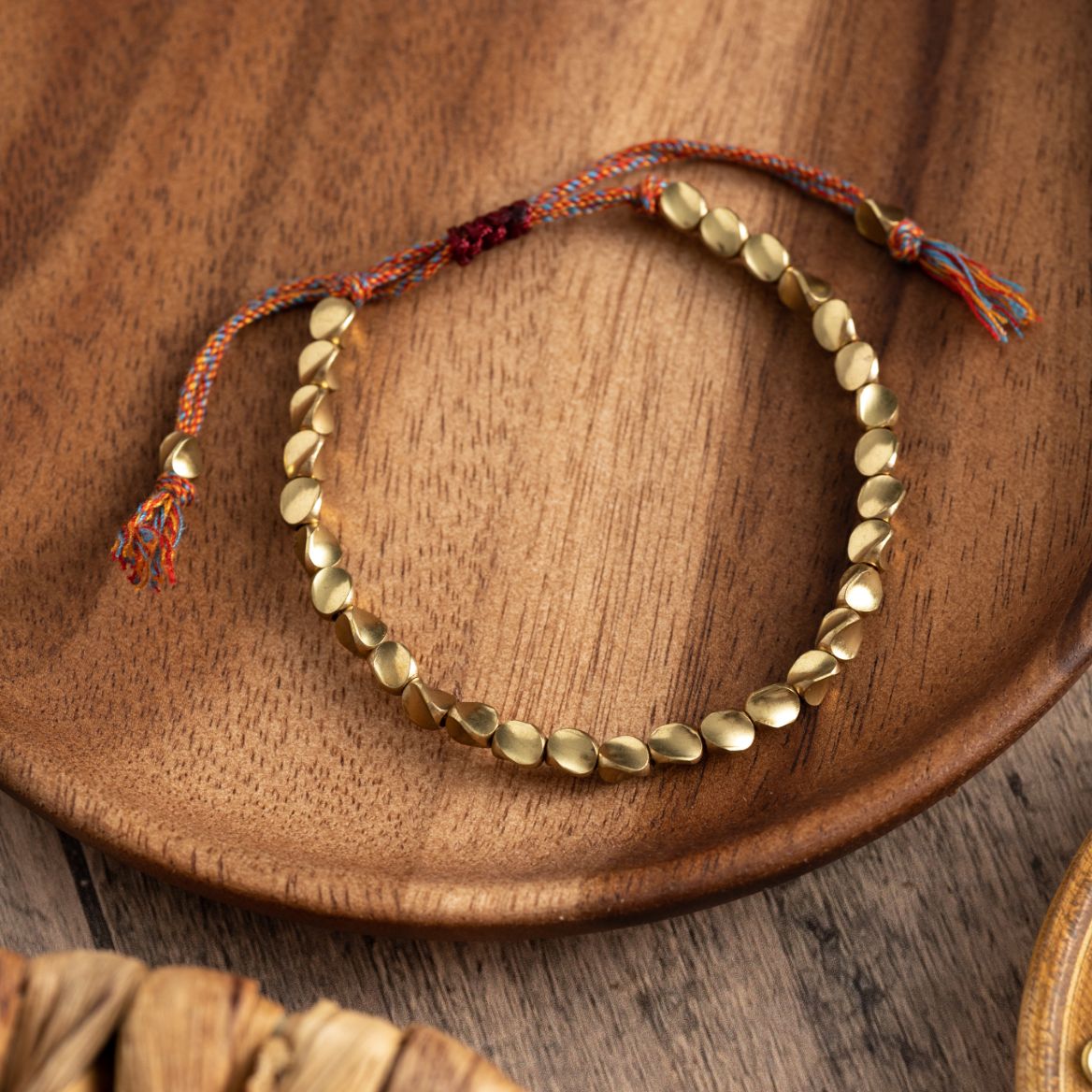 Glücksarmband - Goldfarbenes tibetisches Armband - Handgefertigt