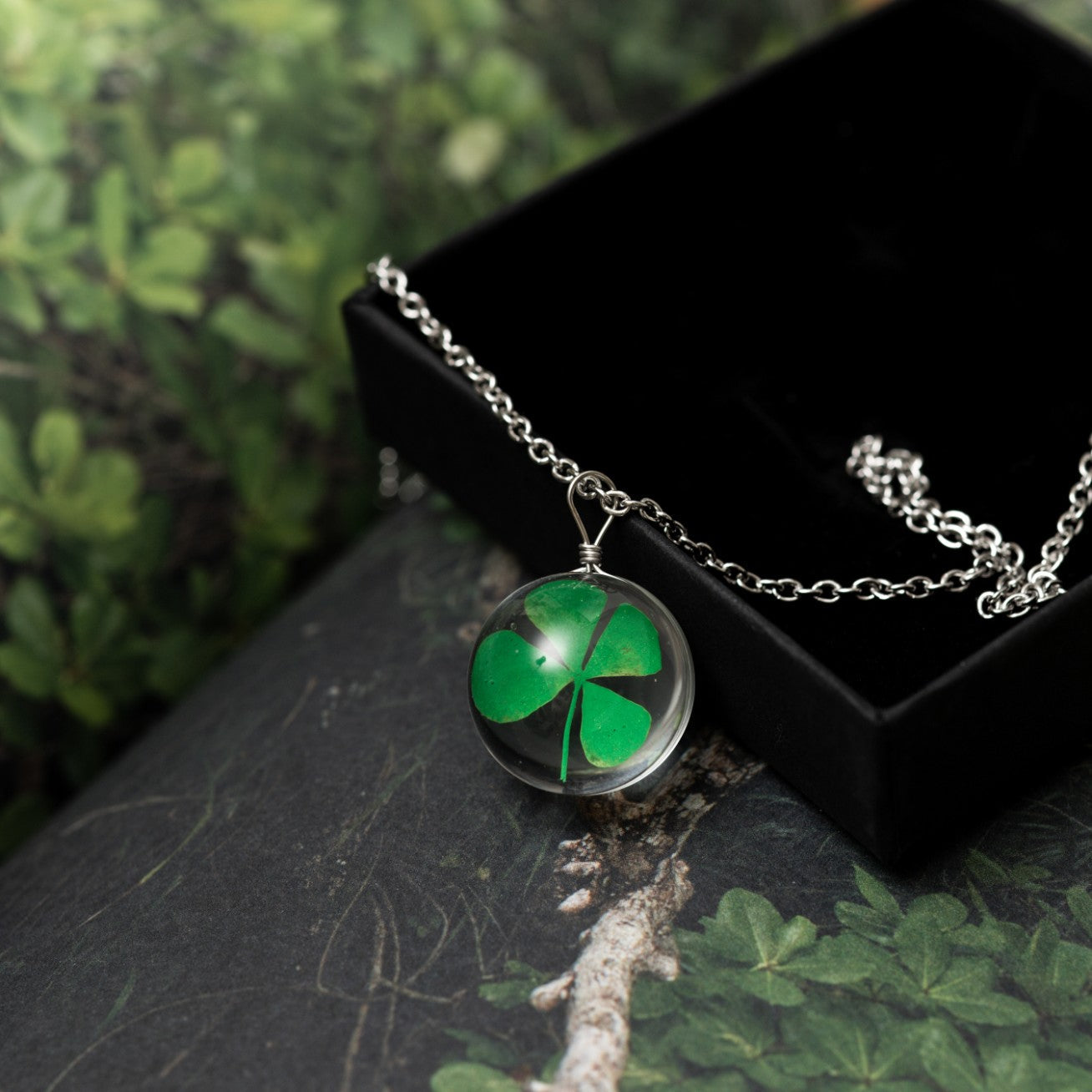 Wer kennt es nicht? Stundenlanges Suchen im Gras auf der Suche nach deinem ganz persönlichen vierblättrigen Kleeblatt. Wir haben die Suche für dich übernommen und das Blatt für immer in einer wunderschönen Glaslinsenkuppel eingefangen.