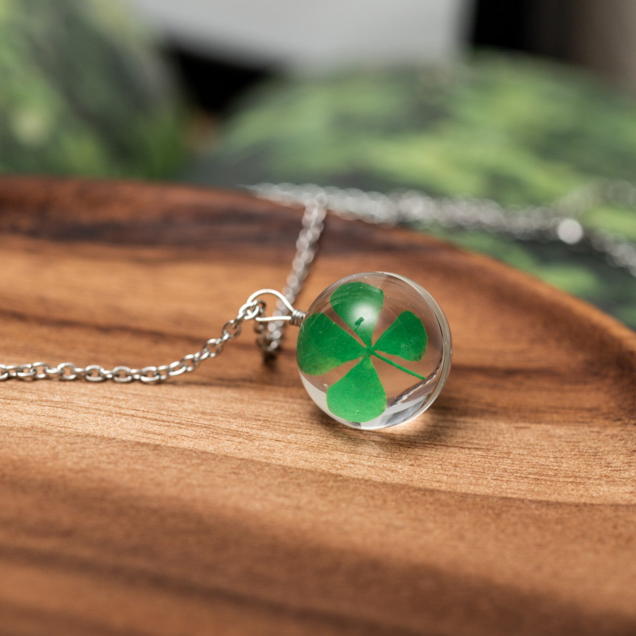 Glückskette – Vierblättriger Kleeblatt-Anhänger – Glück – Glaskokon