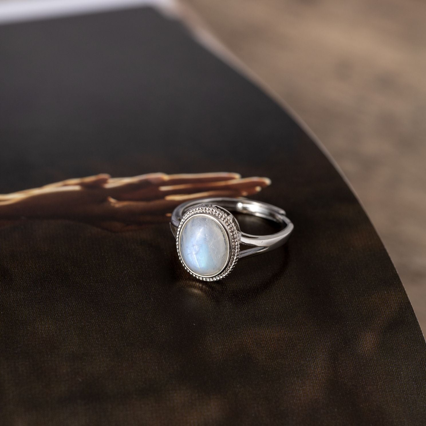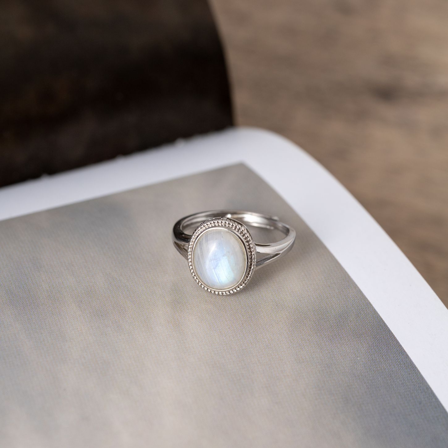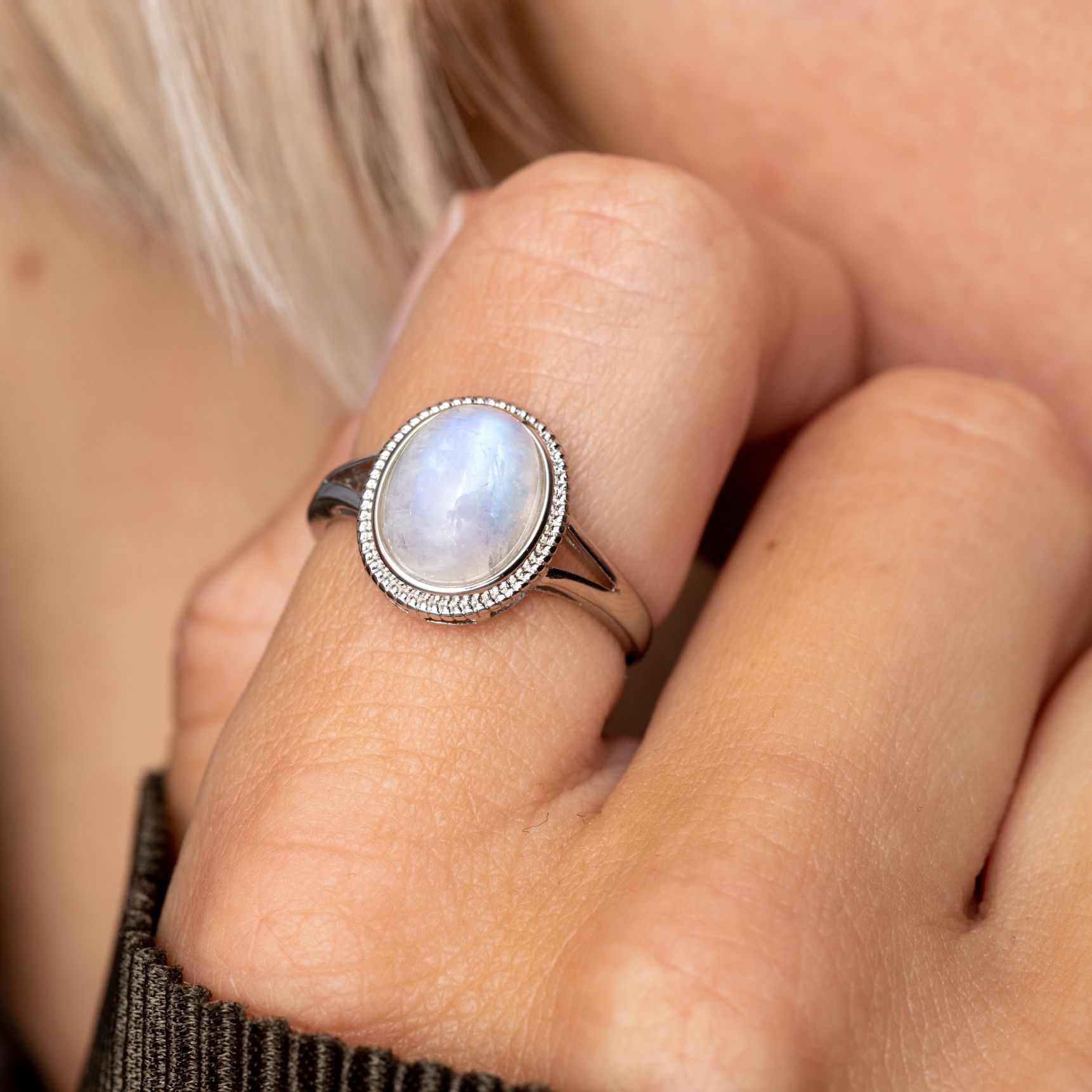 Dieser einzigartige Ring besteht aus einem echten Mondstein, der für einen zeitlosen und dauerhaften Charakter in Sterlingsilber eingelegt ist.