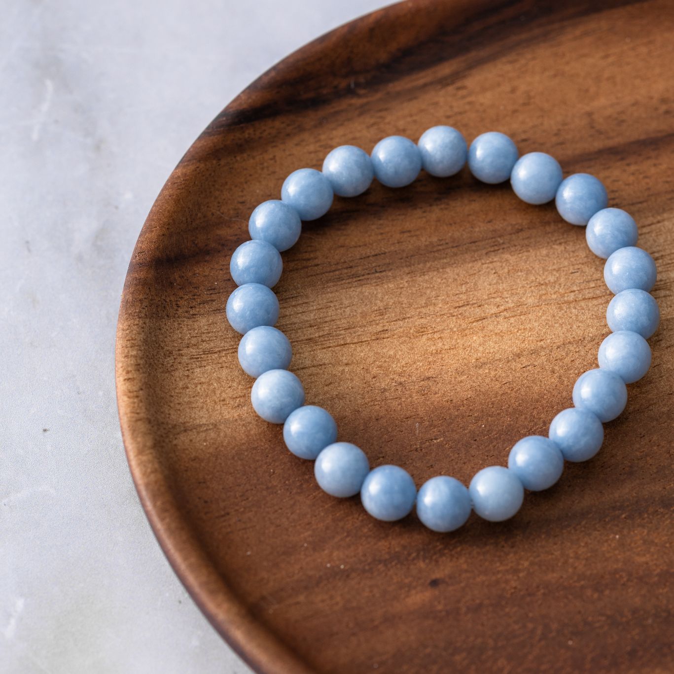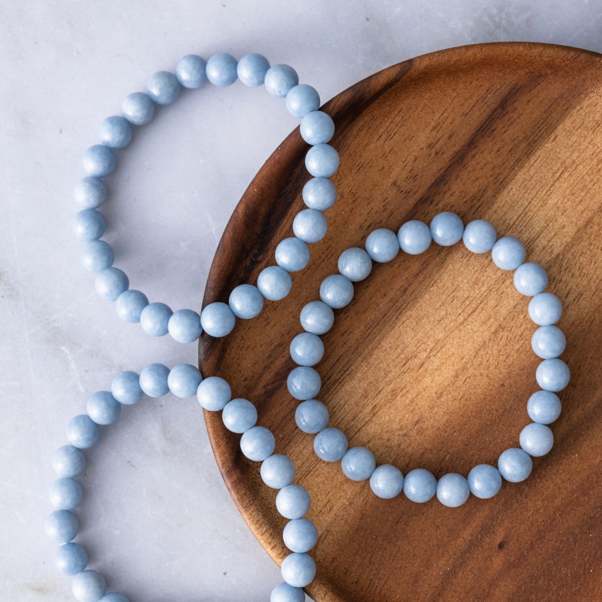 Entdecke die Energie der Edelsteine und schmücke dein Handgelenk mit diesen himmlischen Angelit-Edelsteinen.