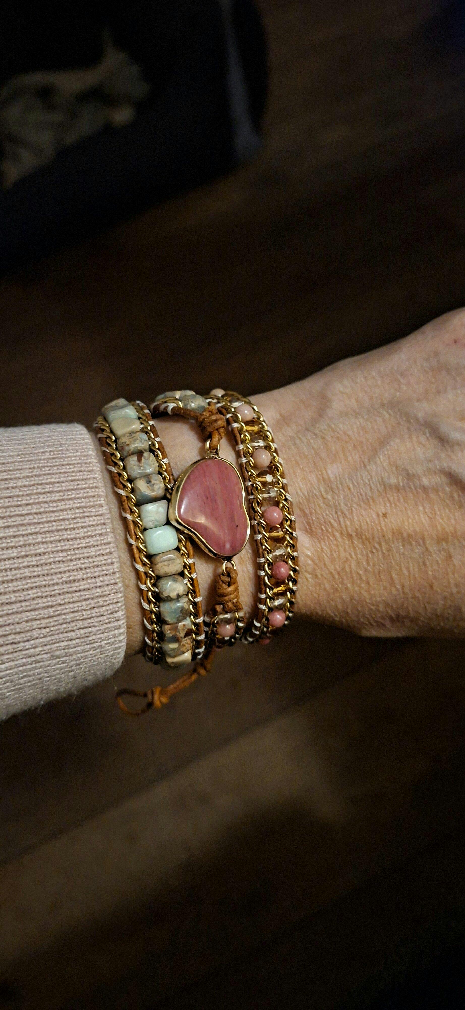 Rhodoniet Hart Wikkelarmband - Jaspis Aqua Terra