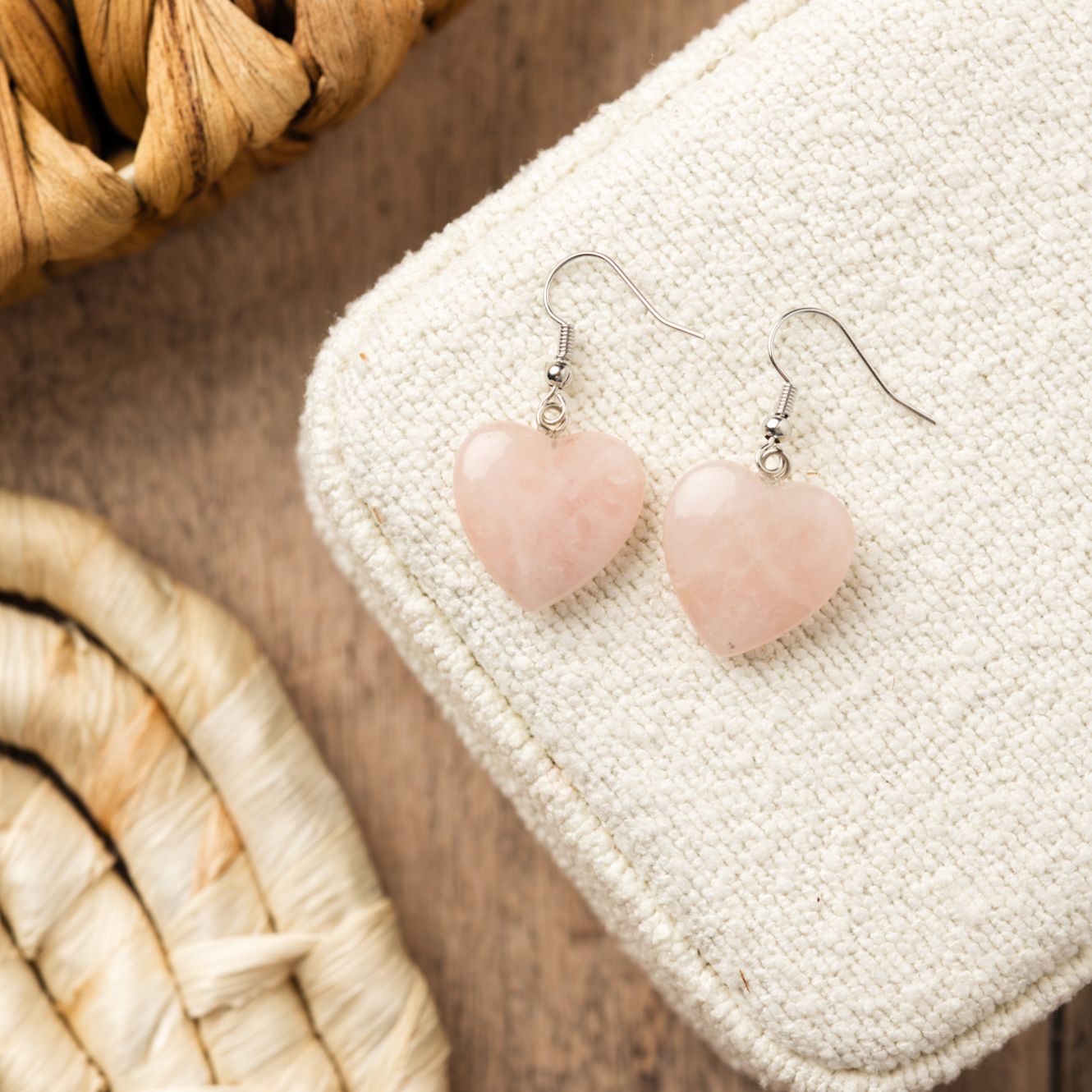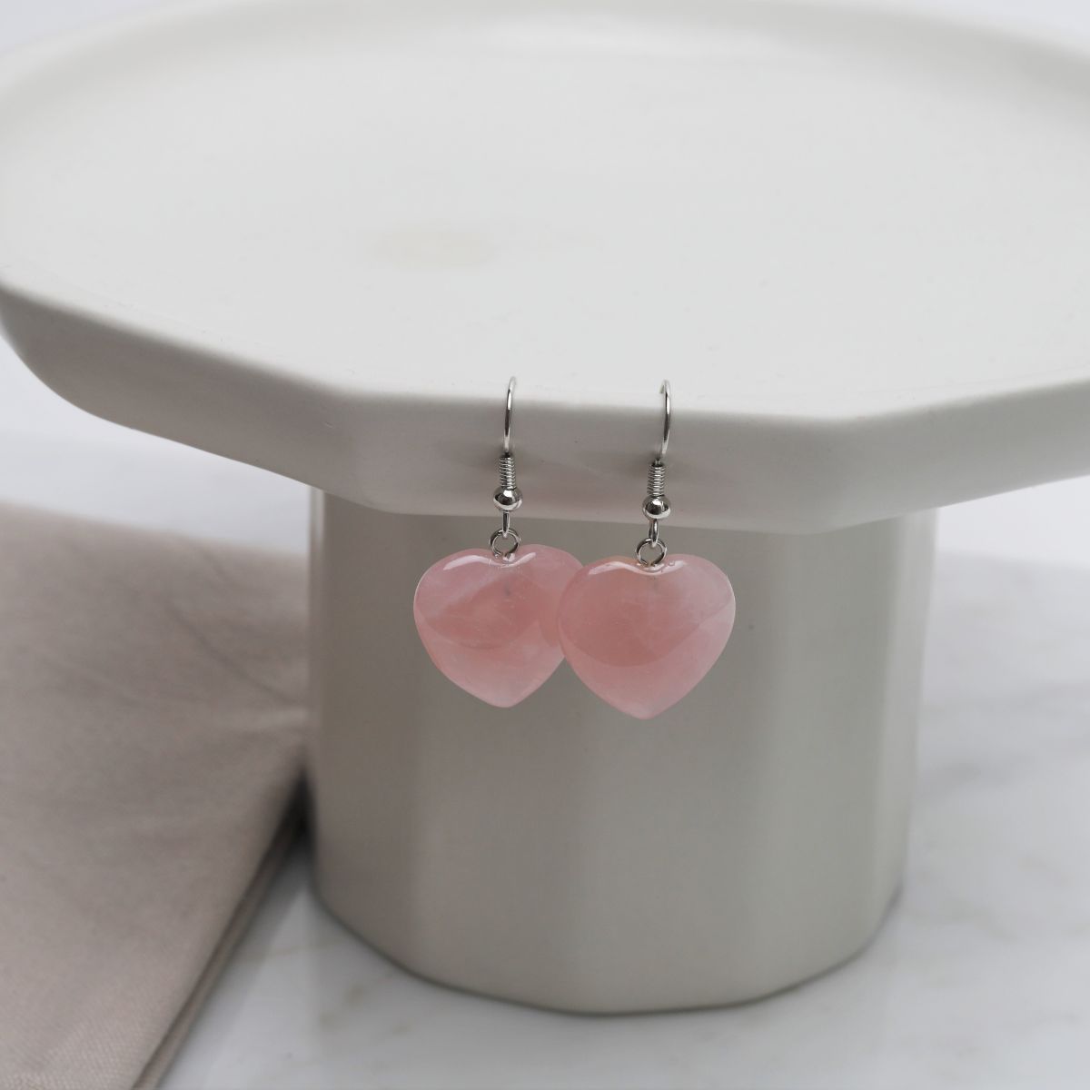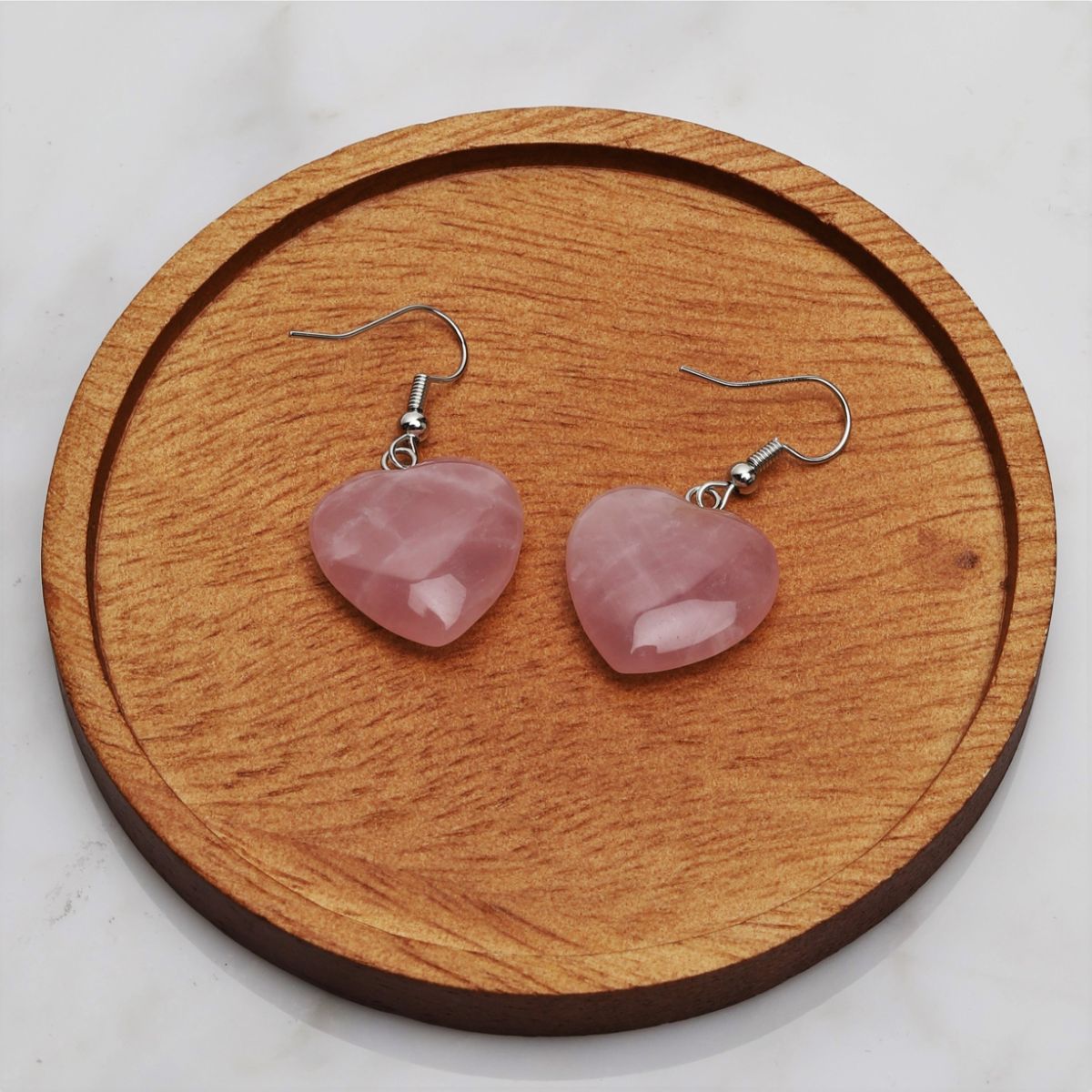Rosenquarz-Herz-Ohrring – Edelstein-Herz – Edelstahl-Ohrringe