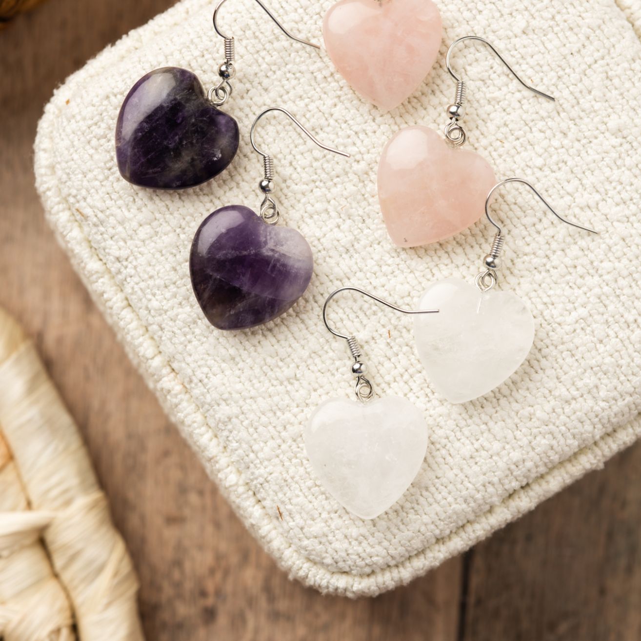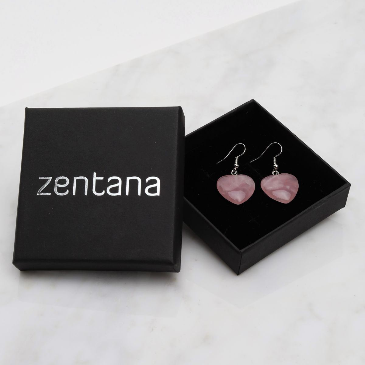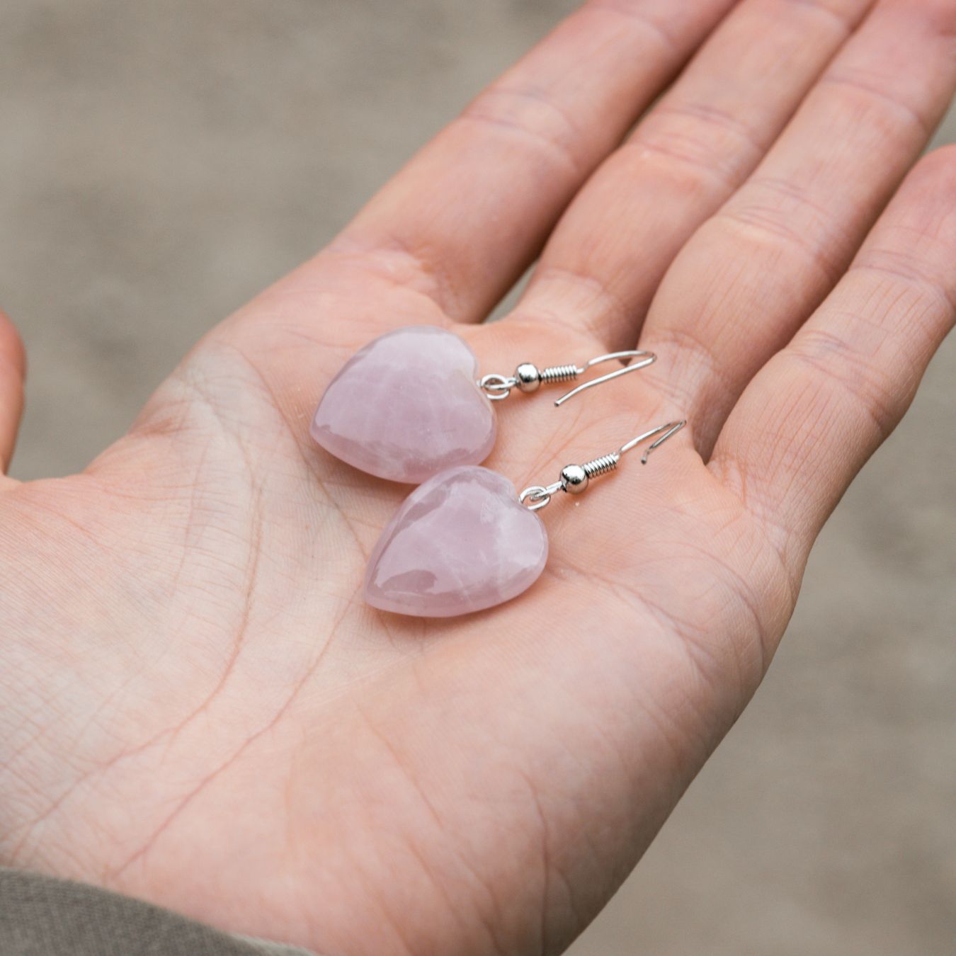 Rosenquarz-Herz-Ohrring – Edelstein-Herz – Edelstahl-Ohrringe